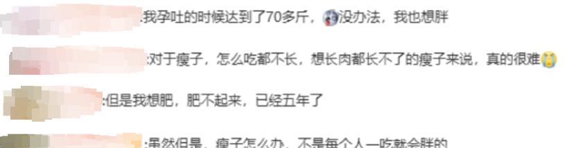 当然,也有一些网友无奈地表示,自己是易瘦体质,无论怎么吃就是胖不起来。