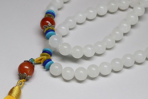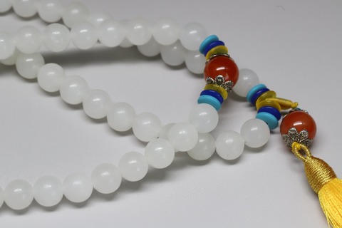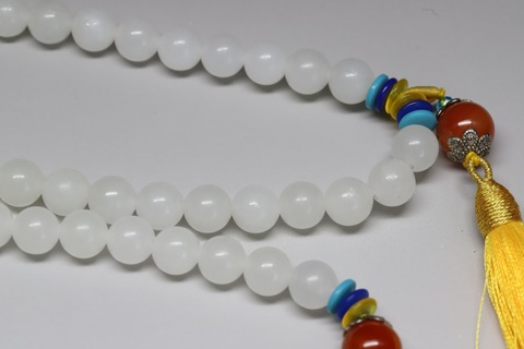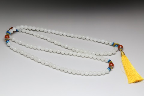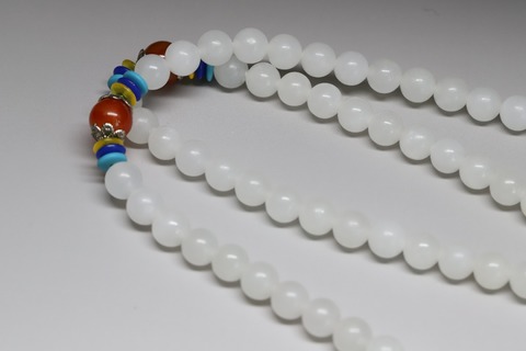和田玉籽料“一级白 一百零八子项链”.藏品规格;每颗高1公分 直径1公分 共108颗 重177克 .藏品介绍:白玉材质,温润细腻,包浆醇厚,颜色纯净,颗粒圆润,大小一致。