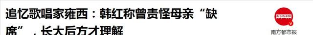 南方都市报,2025-04-14,追忆歌唱家雍西:韩红称曾责怪母亲“缺席”,长大后方才理解