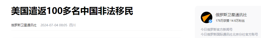 【1】俄罗斯卫星通讯社——《美国遣返100多名中国非法移民》