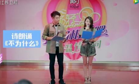总该到他们了吧,再不来,节目就该结束了,结果,又出来郑恺和程晓玥了,我的天,两个人诗朗诵去了!60分钟下来,能看的也就十几分钟。这节目在搞什么?我们要的吴昕、潘玮柏呢?我们要的明道、王鸥呢?你弄两对素人是啥意思?