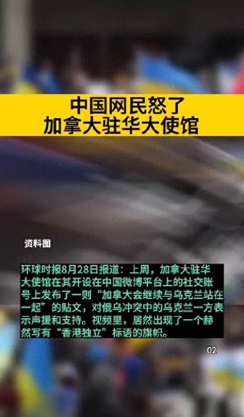 加拿大驻华大使馆发布了一则声援乌克兰的贴文,表达对乌克兰的支持。然而,该贴文中的视频内容引发了问题,视频中出现了一个明显宣扬“香港独立”的标语,这引发了广泛的讨论和批评。