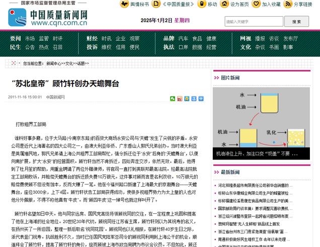 “苏北皇帝”顾竹轩创办天蟾舞台-中国质量新闻网