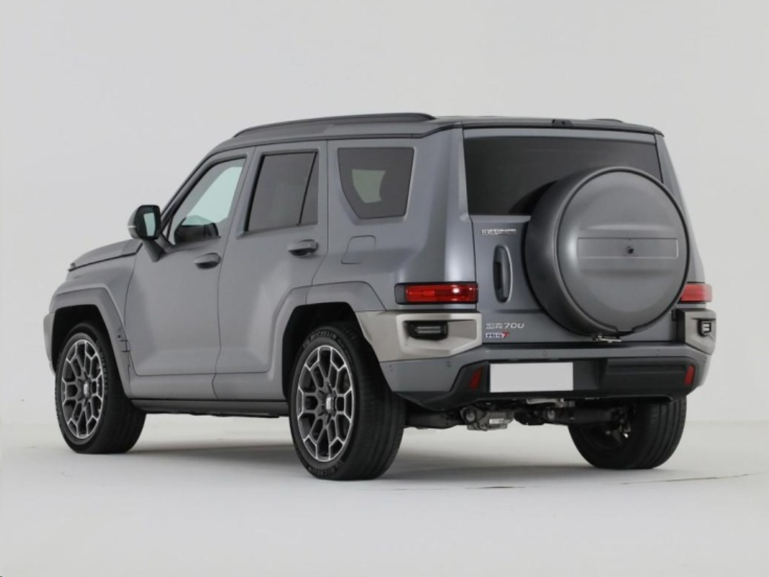 坦克700 Hi4-T的车身侧面方正有力,高隆的轮眉彰显了硬派越野车的定位,轮毂采用20英寸规格,搭配的是越野轮胎,虽然没有首发限定版的22英寸轮毂帅气,但更适合越野车使用,我觉得并不算问题,而且车主可以对轮毂进行选配升级。