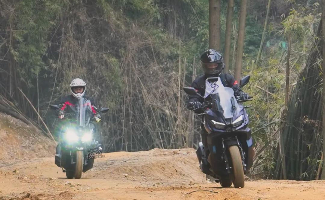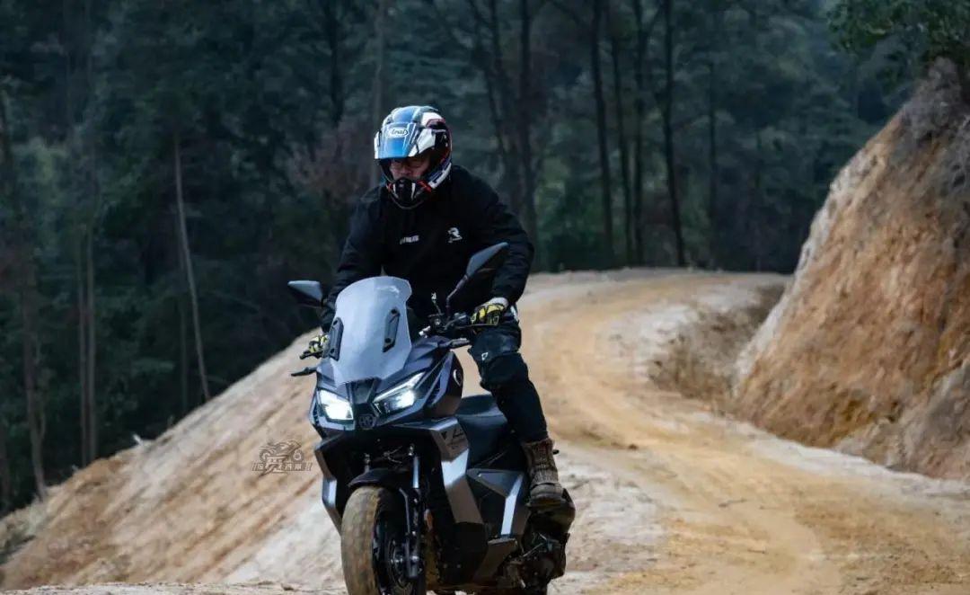 不过这种设计也有缺点,就是在过烂路的时候不太方便调整重心。我试着站起来骑了一下,感觉还行,但如果真的要长时间越野的话可能会有点累。风挡可以电动调节高度这点我觉得很赞,高速和越野都能照顾到,很实用。储物空间说实话有点小,只能放半盔确实不太够用,不过考虑到整车的定位和价位,也算是可以接受吧。