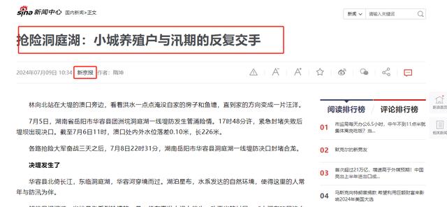信息来源:新京报 2024-7-9 《抢险洞庭湖:小城养殖户与汛期的反复交手》