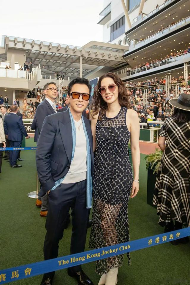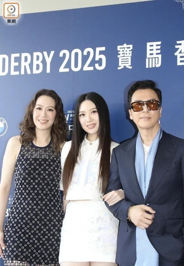 再度连任「香港打吡大使」的甄子丹携太太汪诗诗和女儿甄济如也一起现身比赛现场。