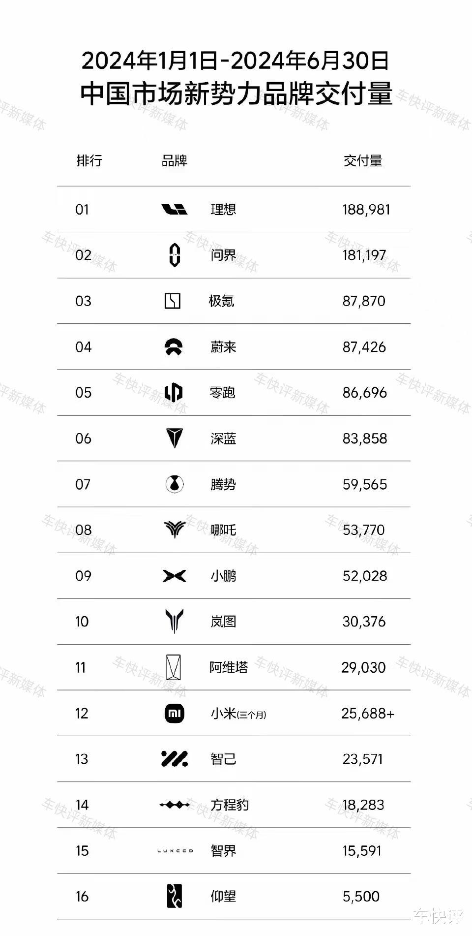 包括极氪、蔚来和零跑这三家上半年销量表现同样很出色的造车新势力,业绩下降也都没有能够突破9万辆。