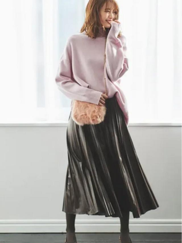 百褶裙有垂感和褶皱节奏感,不仅能够遮胯遮腿,还能通过纵向褶皱达到“拉长下半身”效果。搭配简洁的针织上衣,可以轻松穿出干净利落又不失柔和的知性氛围。