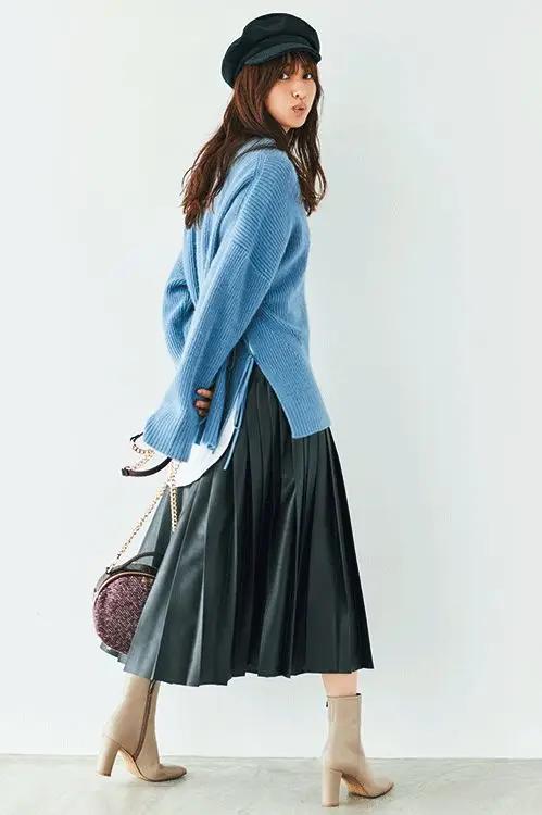 如果你希望日常通勤穿得舒适又不失专业感,针织+百褶裙一定是最稳妥的组合。