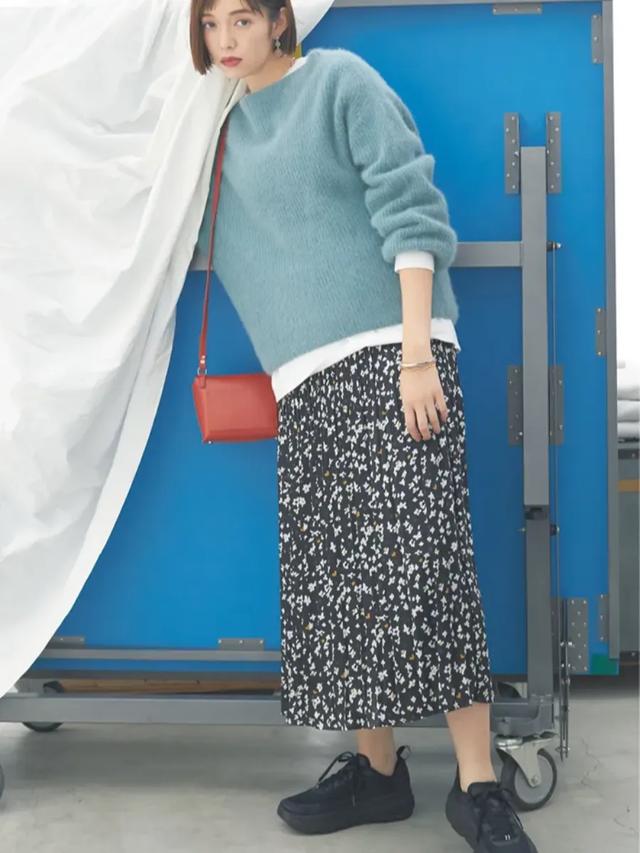 如果你想在春日穿出一点生活气息,又不想流于普通,那就选这组:针织+印花半裙。