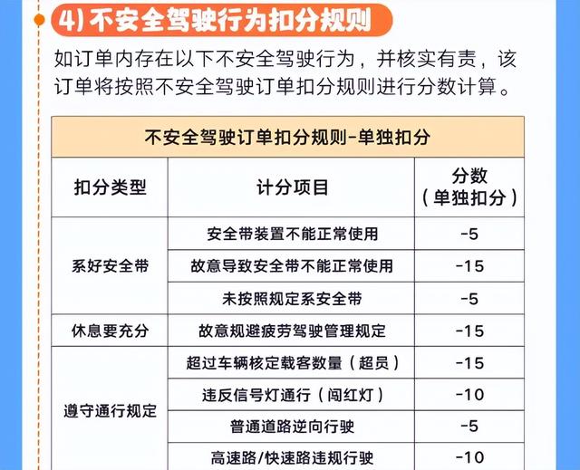 还有不安全驾驶订单扣分规则、言语违规行为扣分规则等。