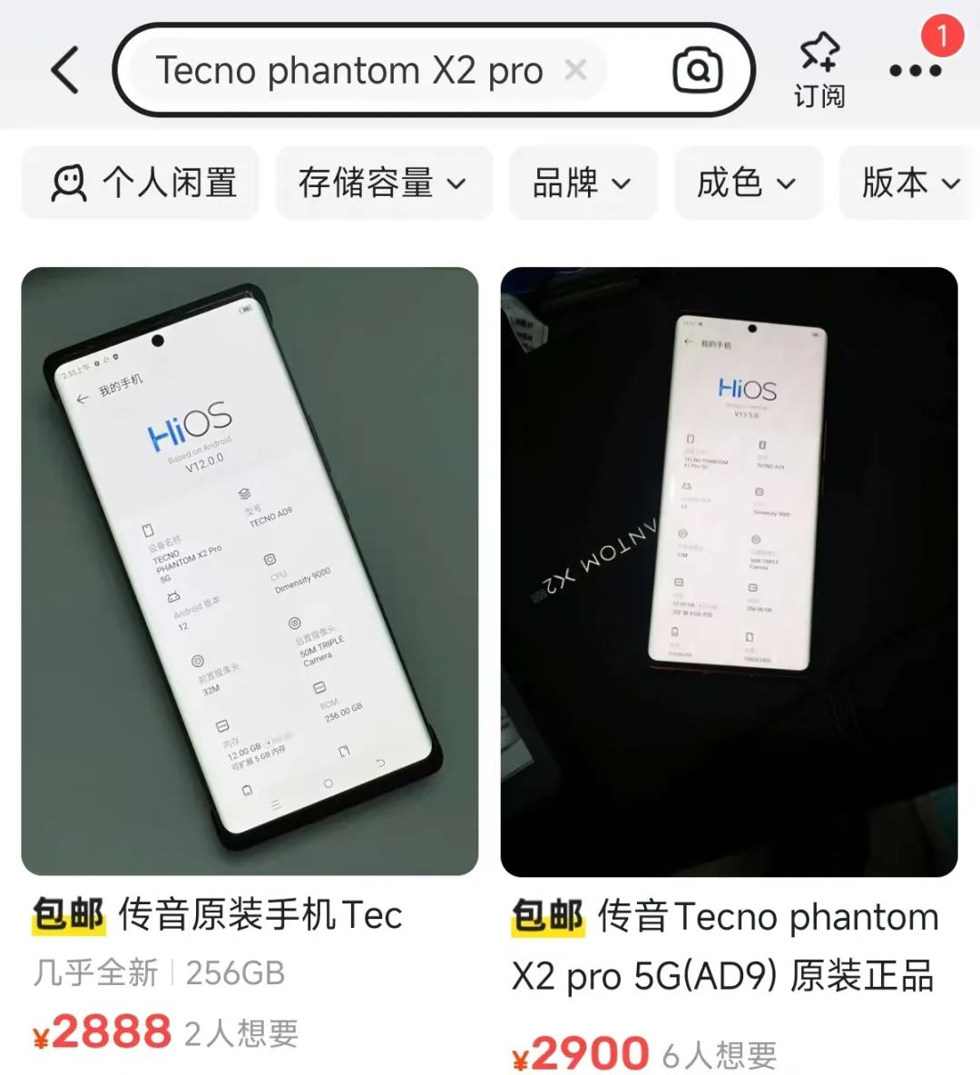 如今2年过去了,Tecno Phantom X2 Pro二手机在闲鱼最低都要2888元,可以说是毫无性价比,同样预算都能买到骁龙8+折叠屏了。当然,这玩意主打一个猎奇和稀缺,卖的人也不多,整个闲鱼不超10台,我估计不接受屠龙刀的话,卖家挂一年都还在。