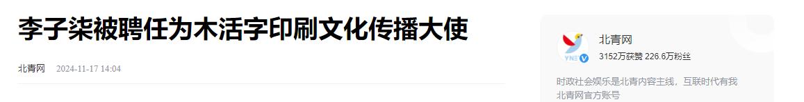 1.李子柒被聘任为木活字印刷文化传播大使.北青网.[2024-11-17]