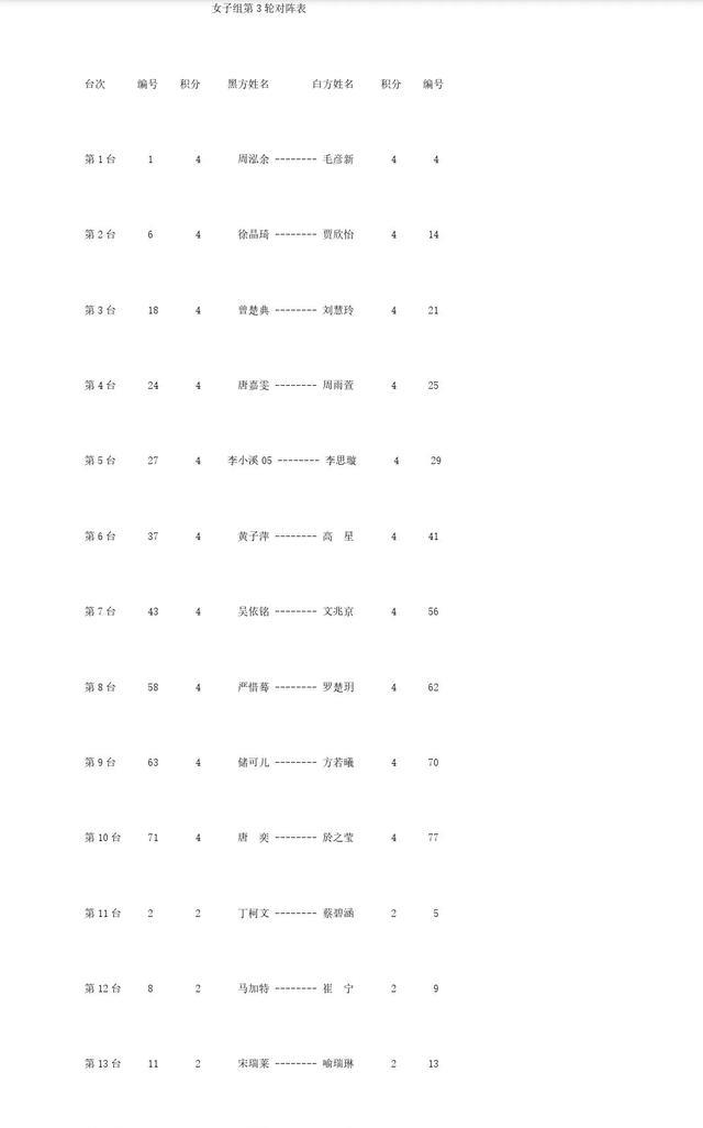 两轮过后,两连胜的共有20人之多,明天上午第三轮对阵有:於之莹八段VS唐奕五段、唐嘉雯六段VS周雨萱初段等。