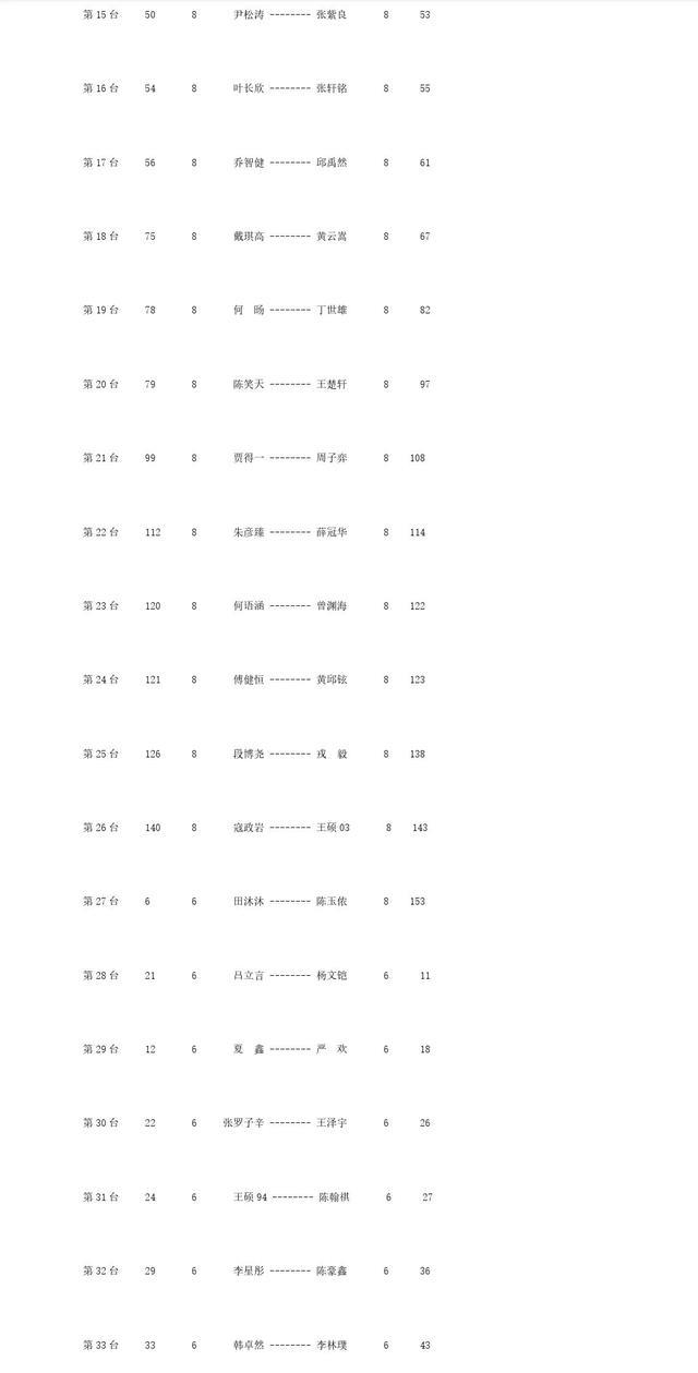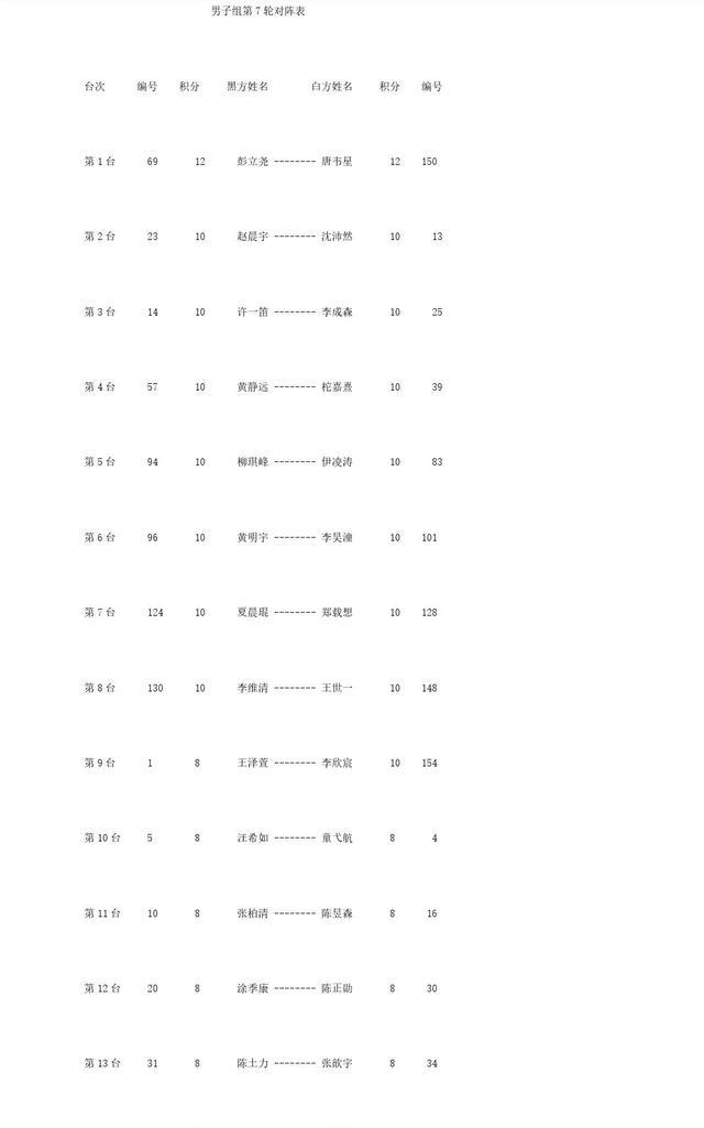 男子组六轮过后,仅有唐韦星九段和彭立尧八段两位90后保持全胜,明天上午第七轮,他们俩将展开对冲。同积10分、并列排名第二阵营的有柁嘉熹九段、李维清九段、赵晨宇九段等15人。