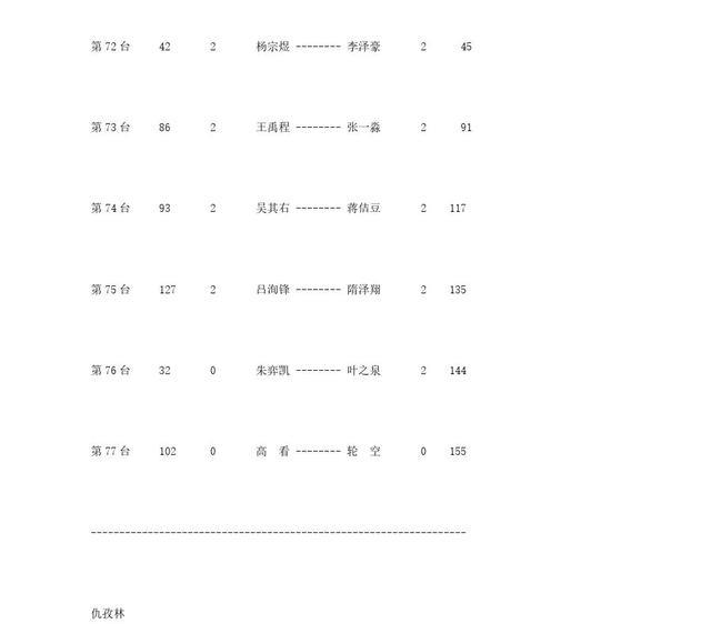 男子组156人参赛,今天上午第五轮战罢,保持全胜的有唐韦星九段、彭立尧八段、黄明宇七段、沈沛然七段、李昊潼六段五人,今天下午第六轮,唐韦星九段与李昊潼展开对冲,弈至大官子阶段时,执黑的唐韦星胜率低至个位数,岌岌可危,但濒临绝望之际,唐韦星逆转之神的神话再现,利用李昊潼一着打吃的漏着,以一连串紧凑的下法逆转局面,最终以3/4子之优险胜。
