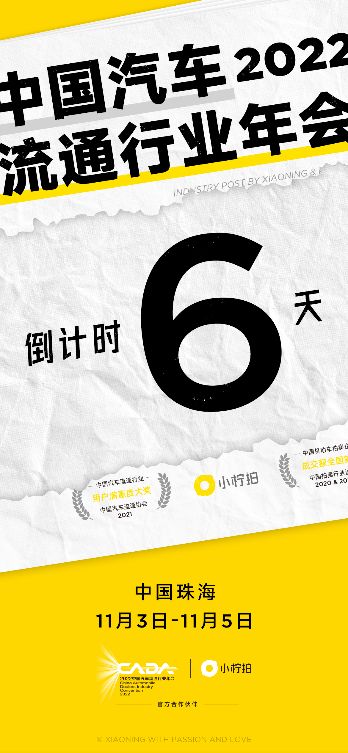 2022中国汽车流通行业年会暨博览会将于11月3日-5日于珠海正式召开,以“不忘初心,继往开来”为主题。小柠拍作为大会官方合作伙伴及中国汽车流通协会优秀会员,将多方位深度支持本次活动。