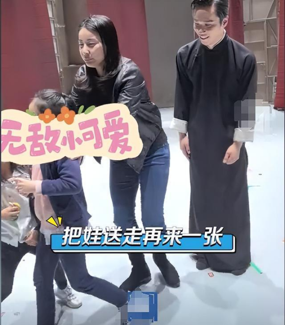 郭晶晶带着自己的孩子们走进剧场,还让孩子和主角合照。