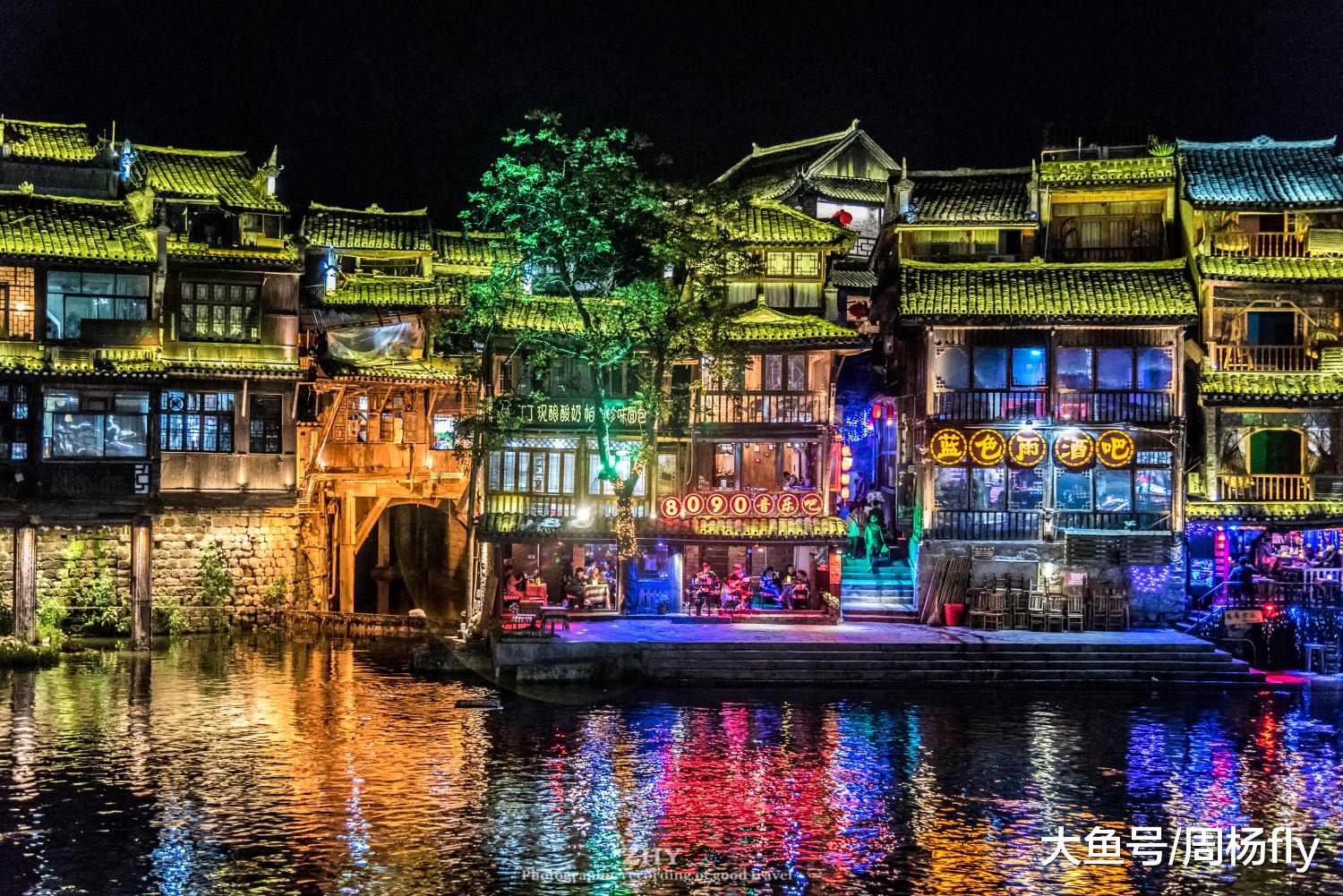 沱江不仅白天美,夜晚华灯初上,霓虹装点的吊脚楼如梦如幻,坐在江边听着清吧里的民谣,看着摇曳的沱江水,举起一杯清酒,这或许就是旅行的乐趣。