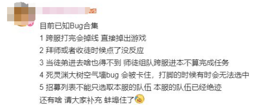 在近日,《诛仙世界》倒是新出了跨服组队和师徒系统,且不说好玩不好玩吧,BUG是真的很多。