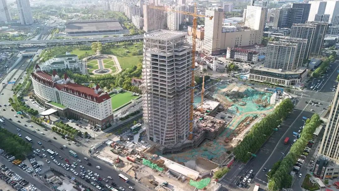 经开区明珠广场板块,尚泽明珠中心瑞园及商业地块进度实拍,住宅在做绿化和内部装修,而商业有一栋写字楼早已封顶。