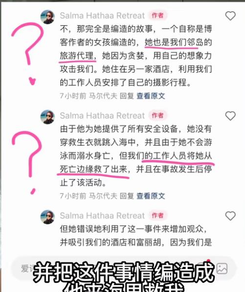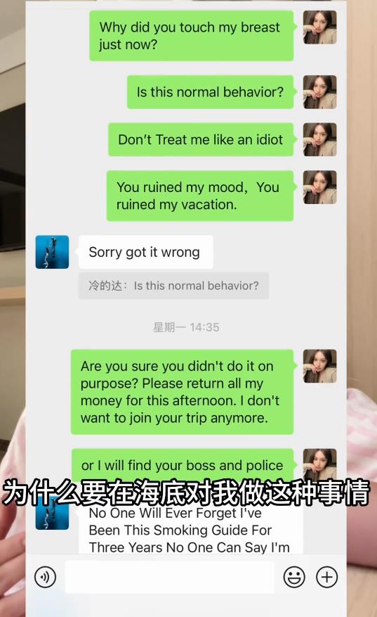 可这个视频后,让小达没想到的是,她遭到了店老板在网上的造谣,说小达在水下根本无法说话,这些视频都是造谣,称她是“隔壁岛旅游代理”,还说她“竞争对手派来的”。