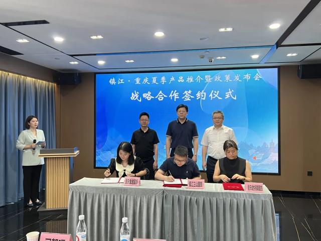 镇江与重庆,千百年来,两城同饮一江水。5月24日,镇江文旅集团党委书记、董事长王家振,党委委员、副总经理张立带队赴重庆,举办夏季产品推介暨政策发布会,会议邀请了重庆近20家旅行社以及数名当地粉丝量超百万的网络达人,并得到重庆长江游轮公司的大力支持,该公司总经理助理兼市场营销中心总经理司朝晖出席推介会。“醋都”牵手“山城”,加强旅游合作交流,共迎八方客,共同推动旅游业的发展。