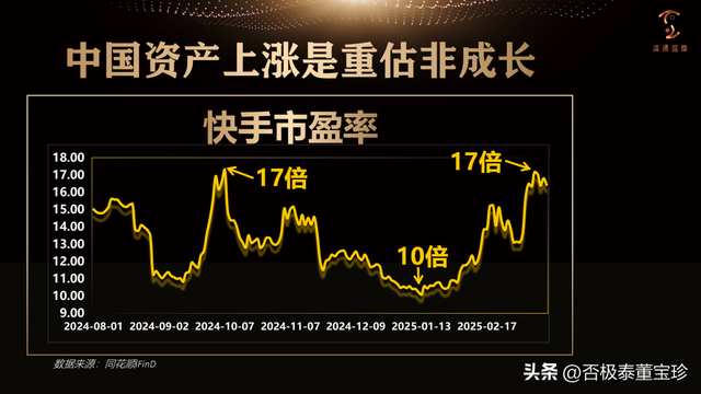 如果腾讯的市盈率曾跌至 10 倍,还可以理解——毕竟腾讯是成熟企业,市场已经充分消化其成长性。然而,作为新兴崛起的抖音与快手,仍然被市场给予 10 倍市盈率,这完全不合逻辑。因此,快手的股价迅速以翻倍方式上涨。