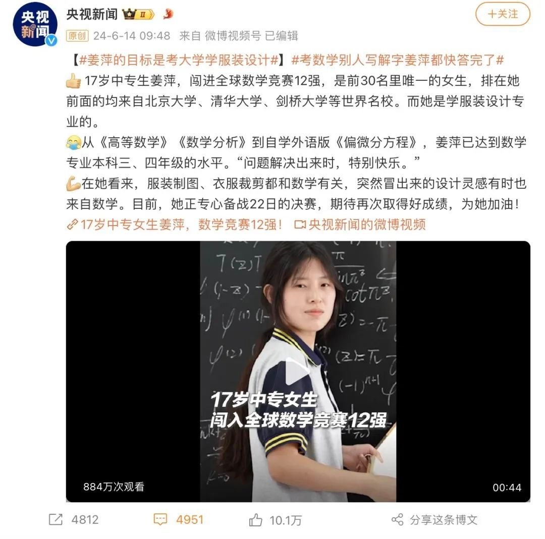 姜萍的故事激励着更多热爱数学的学子勇往直前,不断挑战自我。在这个充满竞争和挑战的时代,让我们期待她在决赛的发挥,实力见真章!