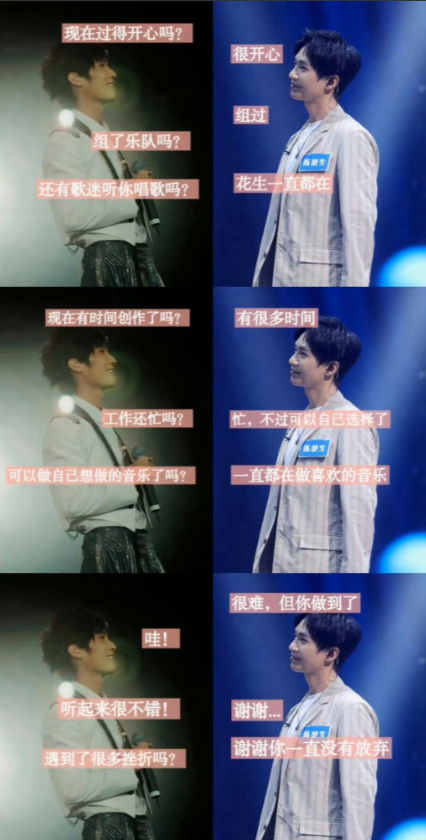陈楚生在《快乐老友记》中首次谈参加《披荆斩棘的哥哥》心路历程,07年是快男的冠军,十六年后在披荆斩棘仍然陈楚生首位双料冠军说到“你不知道自己的成长到底成长到什么程度”但还好这次结果告诉你“陈楚生走过的每一步都算数”