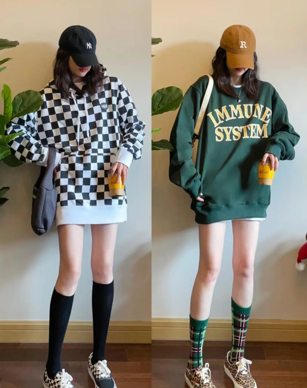 现在的袜子款式也是五花八门,各种纯色袜、彩色袜、印花色织袜等等,长度上区分还有中筒袜、加长袜,这种袜子只要和帆布鞋颜色搭配得当,就能增添层次感,收缩脚踝的视觉,显瘦还有看点。
