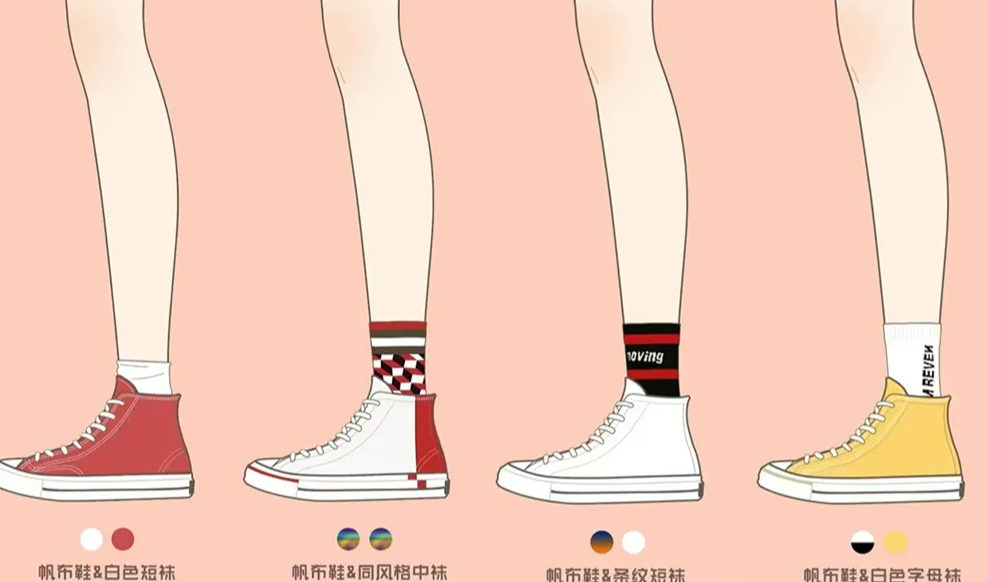在实际生活中,并非所有女生都拥有细又长的双腿,因为身材不佳腿粗没办法很好的驾驭帆布鞋,倒是可以请求袜子来帮忙。
