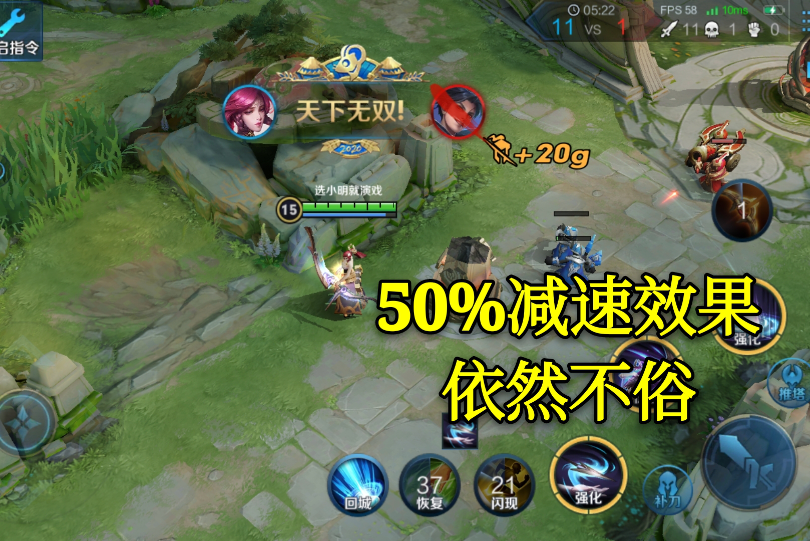 大家都清楚伽罗的强势在于手长,手长就意味着更安全的输出环境,更广阔的输出空间。而被动的减速其实不过是锦上添花而已。而且我们理解的50%减速效果其实并不是90%减速效果的一半,在王者荣耀里减速机制是有衰减的,也就是说50%的减速效果其实并没有那么不堪。更何况原来的伽罗对敌人造成的减速时间是0.5秒,在新版本下增加了0.25秒,变为了现在的0.75秒,这就让伽罗的控制时间变长,其实从某种程度上来说和之前的90%减速无异。
