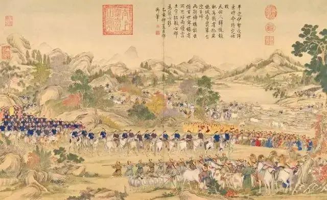 准噶尔被基本平定后,清军开始南下。南疆地形相对封闭,而且清朝已占据了天山以北和吐鲁番、哈密等地,从东、北两个方向对大小和卓形成了半包围。不过,乾隆皇帝行事还是相对稳妥,直到1758年,确定阿睦尔撒纳是死在了俄国,他才下诏征讨霍集占。