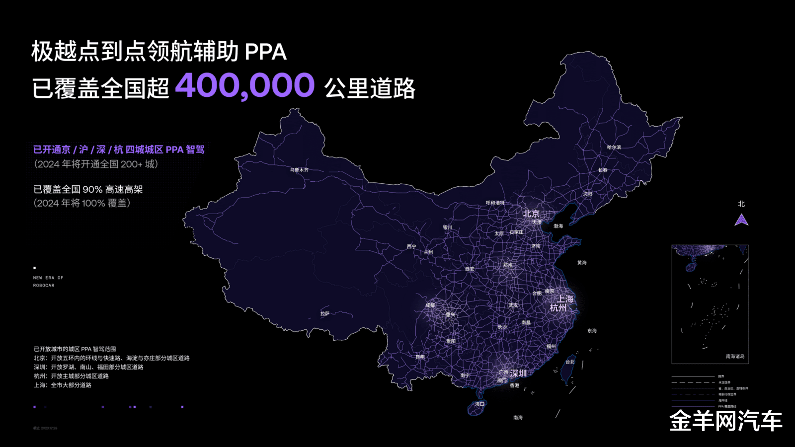 据统计,截至2023年年底,极越PPA已覆盖全国超400,000公里道路,包含了:全国90%高速高架路,以及北、上、深、杭四城的主要城市道路。据极越CEO夏一平介绍,极越PPA覆盖的40万公里均为真实有效数据,相当于绕地球赤道线10圈;同时极越不会受外界因素干扰而夸大覆盖范围和里程,这是对消费者的行车安全和用车体验的负责。随着“按月OTA”的计划落实,极越高阶智驾使用的通用纯视觉感知系统:B.O.T三向箔(BEV+OCC+Transformer)将在春节前后全量上车,并将在24年完成100%覆盖全国高速高架,开通全国超200个城市道路。