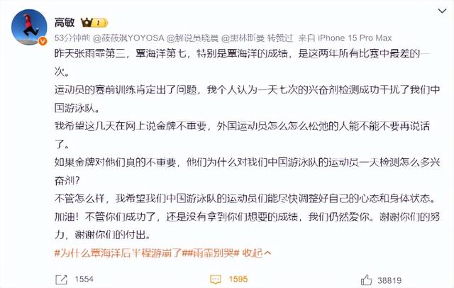 面对世界反兴奋剂组织对中国苛责的行为,曾经的跳水冠军高敏也坐不住欧陆。