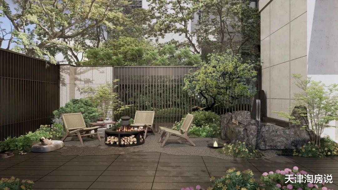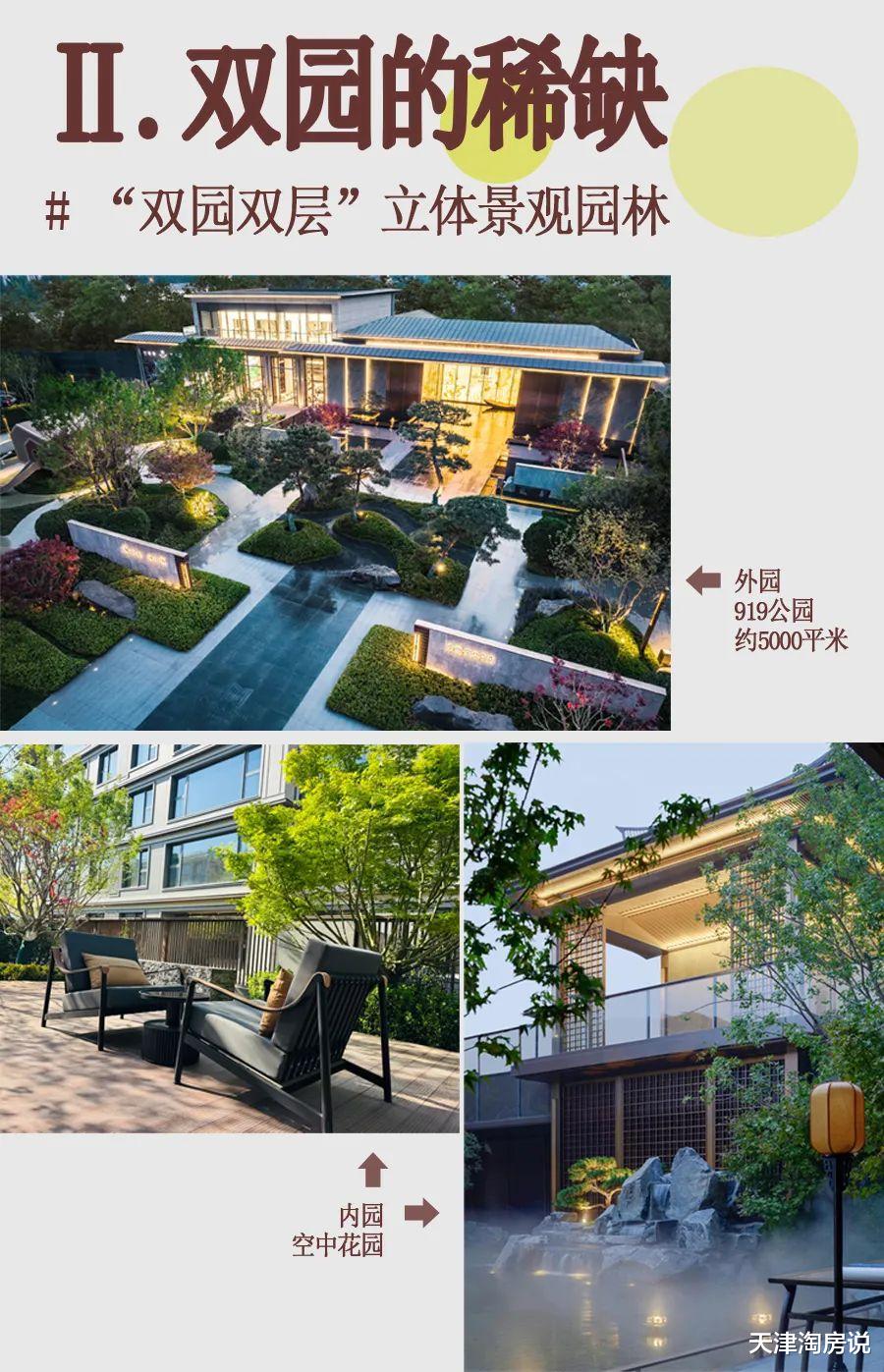 打造了天津城西首个“双园双层”立体景观园林,比常规社区多出30%的绿化面积。