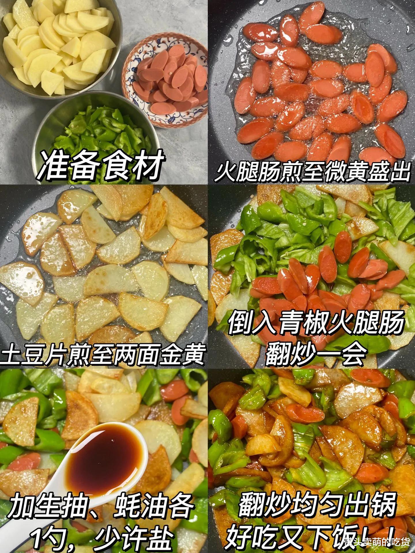 主要食材:土豆,青椒,火腿,生抽,蚝油,这道菜对于很多人都不陌生,把火腿换成是腊肉或者是腊肠,那就是妥妥的腊味菜,解馋下饭又下酒的硬菜,不过用火腿代替,甚至是只加几勺猪油,也能让这道菜非常下饭。