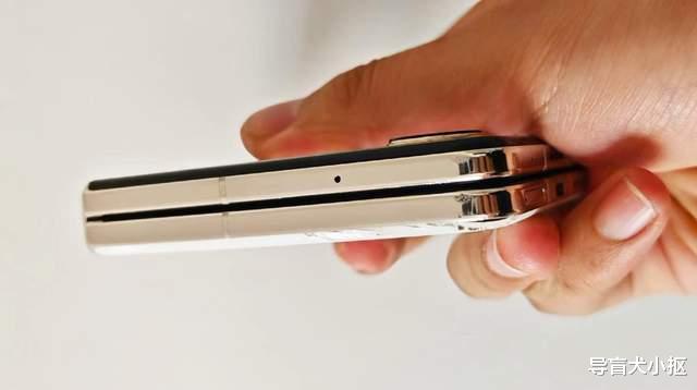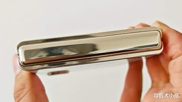 翻转magicvflip到机身后盖背面,这里是真正的底壳,也是主题颜色区域。小编拿到手的是茶花白配色,底壳做成了羽绒质感的图层,表面覆盖了防护玻璃,一体成型,看着十分精致。底板边缘位置设置了一个闪光灯的开孔,在翻盖状态下会觉得很突兀;展开后盖,手机变成直板造型,闪光灯与摄像头之间也存在不小差距,虽不影响使用,但观感总觉得很不协调。另外,在翻盖使用时,magicvflip的转轴处,覆盖了很厚的金属挡片,与中框金属镶边的做工一致,很协调。