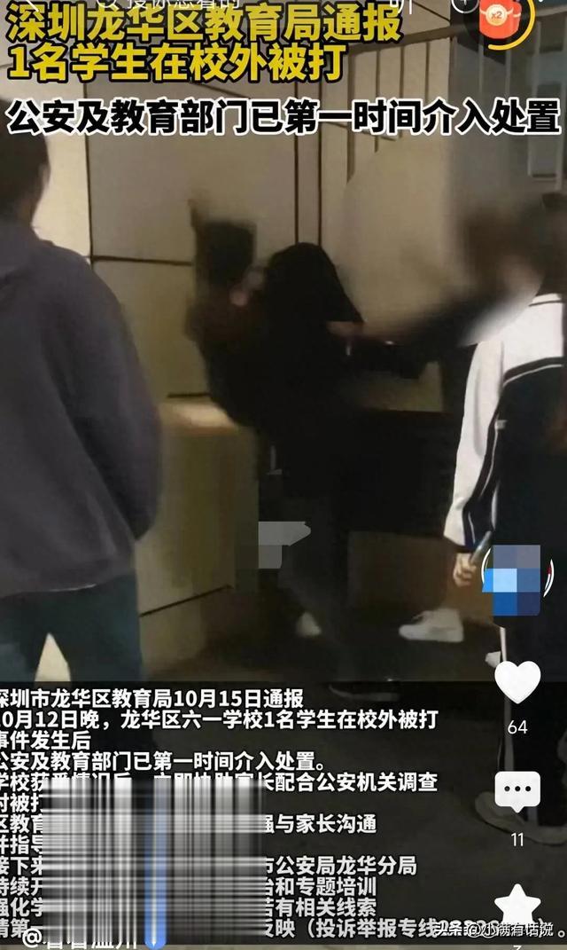10月12日晚,龙华区六一学校一名学生在校外被打,事件发生后,当地公安以及教育部门第一时间介入了调查处置!