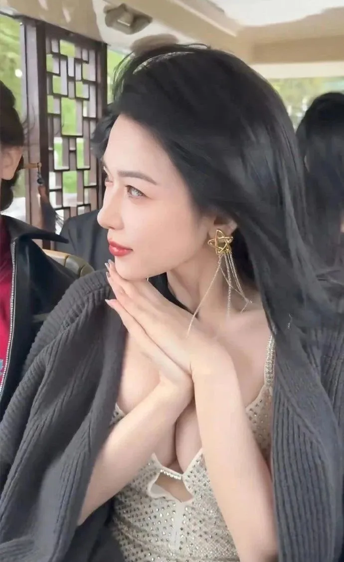 如果说米白色小香风连衣裙是宁心造型的“主角”,那么黑长直发型和水晶耳坠的搭配则是点睛之笔。这种组合不仅能提升整体造型的层次感,更是她“辣又美”风格的核心所在。