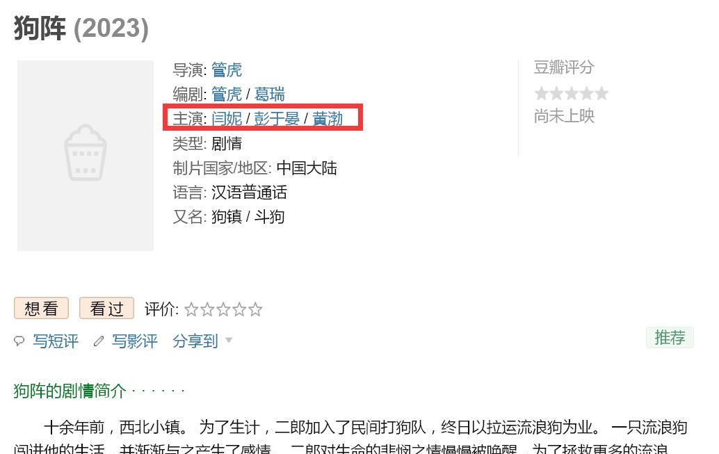 其实,管虎导演的《狗镇》早于2021年9月就已经开机了,2022年年底剧组就宣布该剧已经进入了“后期制作阶段”,是由著名影星闫妮、彭于晏、黄渤联袂主演的。