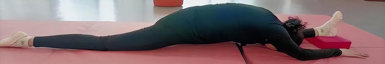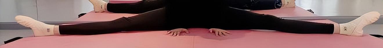 两张健身照——一张是背靠镜子,摆出了180度大劈叉的姿势;一张则是压身与左腿平齐成一条直线,也十分到位;两张照片都显示 她身体柔韧度高,协调性好,腰部有力量,应该经受 了舞蹈专业的训练。