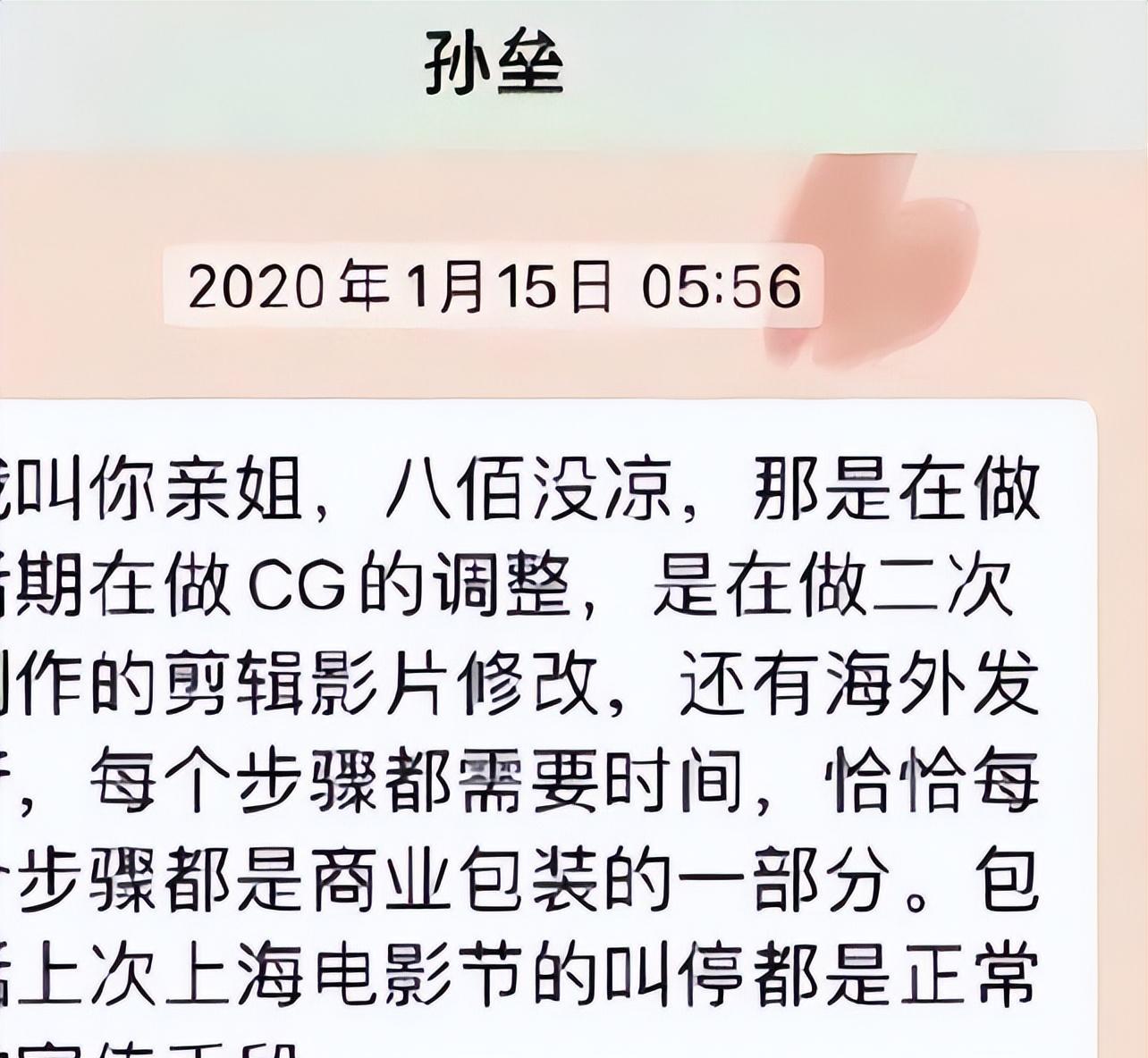 管虎这样的朋友——孙垒竟然在凌晨5点同她丁昱彤聊《八佰》,也说明,他没有拿丁昱彤当外人了;一句“我叫你亲姐,《八佰》没凉”,显示 了二人的亲密度,似乎是在向丁昱彤介绍《八佰》制作的进展情况——如果丁昱彤不是管虎的“什么”人,怎会获得这样的“殊荣”?