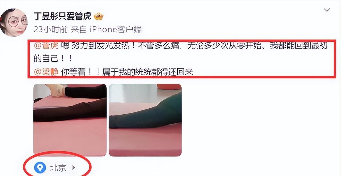 不过时过一天,4月23日,丁昱彤一改昨日的悲戚,重振旗鼓,继续向管虎、梁静喊话,还一反常态地晒出了自己健身照与一些聊天记录。