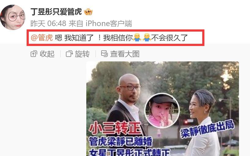 我们痛恨小三,但是要具体情况具体分析,丁昱彤一直坚称 ,她是在二人婚变后才与管虎走到一起的;之所以人们当她是小三,是因为各种条件的限制 ,特别是梁静 的存在,导致二人没有即时官宣离婚的事实造成的。