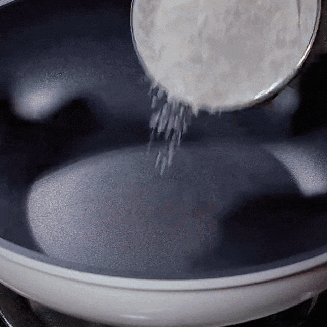 另起干锅里+一小碗面粉,开最小的火慢慢的煸炒,炒出面香味至面粉呈微黄色,再+适量的冷水(切记别加开水、冷水煮出来不易出现疙瘩哦),然后搅合均匀先开大火煮开。