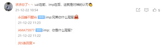 也是由于本次DRX战队对阵的主播队,对位AD选手是前冠军AD Imp,所有在采访中也是问到Deft有什么想对Imp想说的话,Deft在回答中不仅仅提及了Imp同时还表示:“每次提到打得好的AD选手时,想起的人是Uzi选手和imp哥两个”。间接提及了Uzi,看得出Deft也是对于Uzi这名选手的肯定。