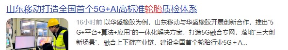 【1】齐鲁壹点——《山东移动打造全国首个5G+AI高标准轮胎质检体系》2025.3.20。